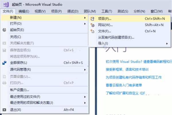 2、左上角按文件——新建——项目,或按ctrl+shift+n