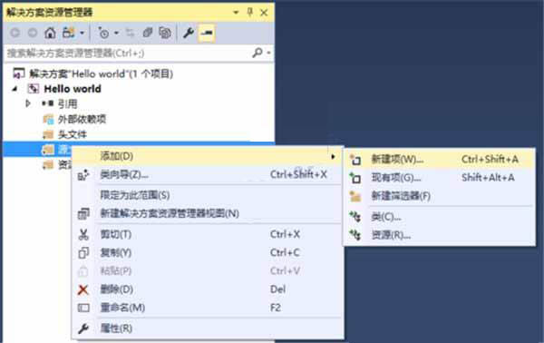 5、右键“源文件”,再按添加——新建项
