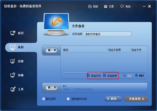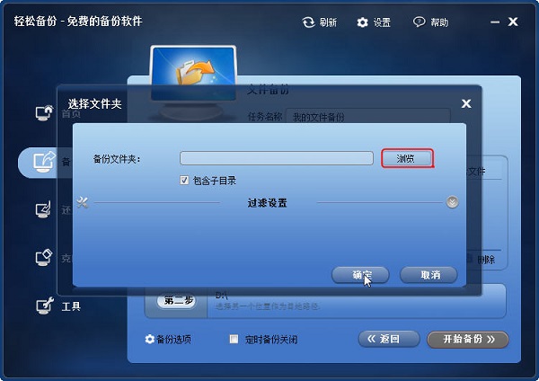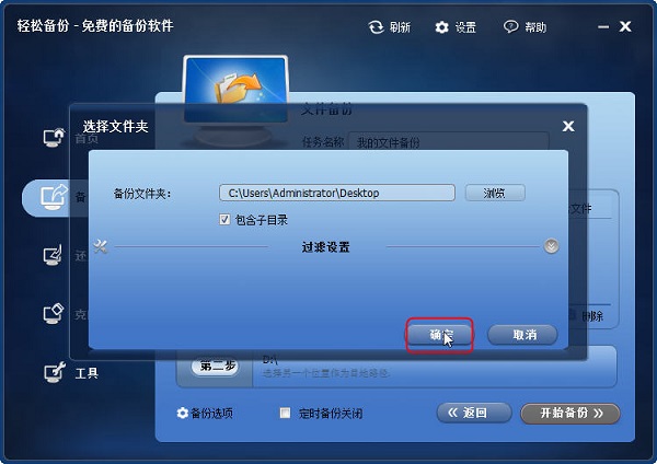 6、当你把所有都设置好后,点击“开始备份”来执行此操作