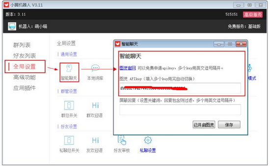 8、自动聊天(对接图灵机器人,可填入多个key,用完自动切换,支持知识库及几十种能力随意扩展)