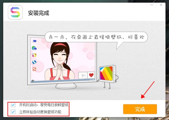 5、勾选“添加桌面日历”电脑右上角会显示一个时钟插件,也会显示年月日。搜狗壁纸很实用吧