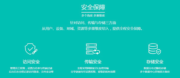 (1)针对访问、传输与存储三方面,从用户、设备、地域、资源等多重维度切入,提供全程安全保障。