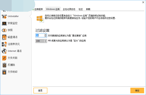 8、您可以使用这些设置来自定义"Windows应用页面的样式和功能,更改会在已安装的程序列表更新后生效经验不足的用户不应该修改这些设置