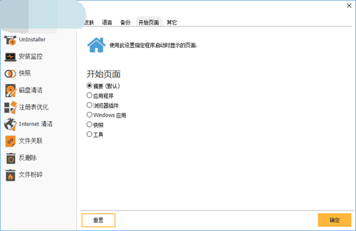 13、使用此设置指定程序启动时显示的页面:开始页面、摘要(默认)、应用程序、浏览器插件、Windows应用