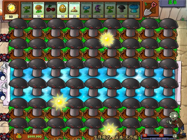 技巧:1.无限小喷菇,僵尸只能等死。2.特殊植物,如:卷心菜投手,玉米投手,导向蓟等等)(注:不想用秒杀植物确仍想秒杀浮浅僵尸请用大嘴花,僵尸出水必死)