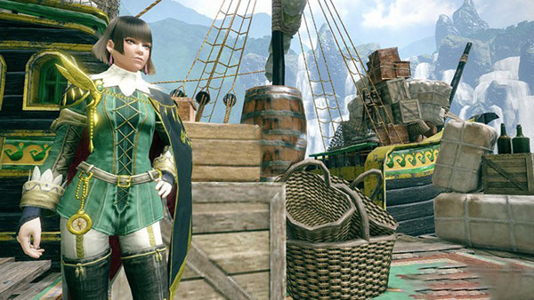 从异国渡海而来的交易船停泊在随从广场。在这里,交易窗口罗德娜一边与炎火村交易,一边向猎人出售有益的商品。