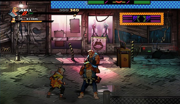 2、玩家依然可以把敌人扔出去,还能在这个过程中持续击打使其浮空。Axl现在可以把敌人扔给Blaze,后者可以给空中的敌人一套连招,打到其怀疑人生。在爆燃的背景音乐中,玩家清版,打破障碍,冲向下一个场景。需要记住的是本作是存在队友伤害的,所以玩家需要找准空档和时机,以免误伤队友