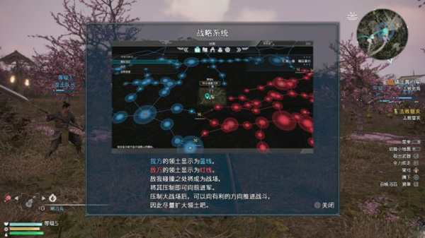 这里的移动不是指具体到某块战场的跑路,而是战场任务、委托等的移动。本作比以往历代无双更充满了RPG要素,所以地图探索都成了一个坑……咳咳,跑过的区域自然就是亮的,没去过的黑黢黢的那您就自坑吧。但是并不是说这就没得跑,活用任务、委托的方块进行传送可以很方便地跨区域移动,跑过的地方,有的有道标、有的有村落、码头等等。将光标移动到相应区域之后,只要该地没有被敌对势力占领,直接按圈就可以瞬移的,所以没必要坑着自己跑马不停。如果无法瞬移,按方设定目标地,然后骑马会自动跑过去
