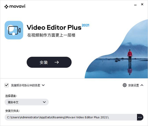1、下载Movavi Video Editor Plus破解版软件包解压,运行exe程序安装软件,选择我接受协议条款。