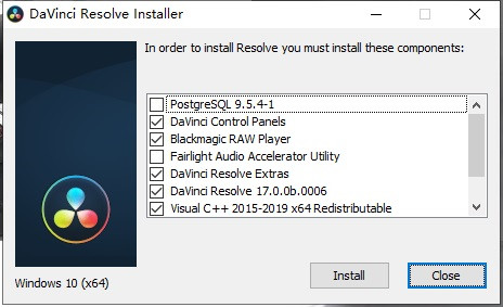 1、点击运行【DaVinci_Resolve_Studio_17.0b1_Windows.exe】开始安装原程序,在弹出框中选择install开始安装组件