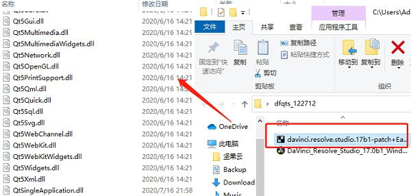 1、接下来将解压文件夹中的【davinci.resolve.studio.17b1-patch+EasyDCP.exe】复制至程序默认安装路径中