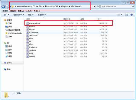 5、再找到Adobe Photoshop CS6所在文件夹,打开里面的Plug-ins文件夹,Plug-ins文件夹里也有个Camera Raw.8bi