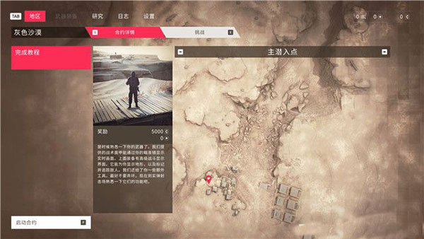 剧情结束后,进入灰色沙漠地图,开始狙击手幽灵战士契约2豪华版教程关卡