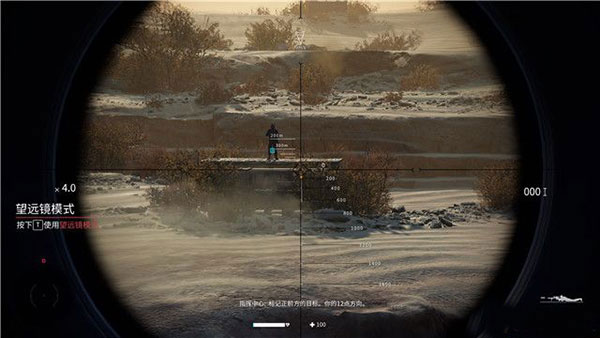 当你使用望远镜得到敌人与你之间的距离后,就可以再次使用狙击枪的镜头