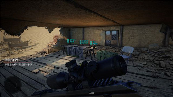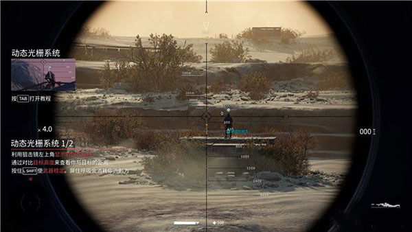 使用望远镜观察并锁定远处的额外4个目标,使用狙击枪将它们击倒
