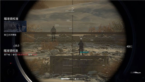 例如敌人距离你400米左右,你就可以拉动镜头,让镜头十字准心右下方的距离网格线变为400左右,这就会大大提升狙击枪的射击准度