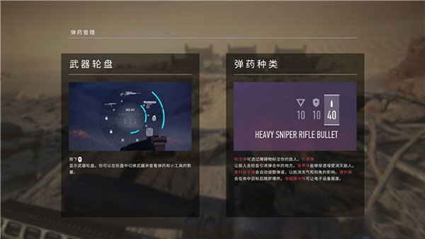 游戏中的狙击枪有好几种子弹,例如性价比高的普通子弹,高伤害的穿甲弹,引诱敌人的诱饵弹等等。若是玩家不打光一种子弹,系统是不会切换成另一种子弹的,下面就来讲讲手动切换子弹的方法。按住TAB键召唤出武器轮盘,就可以在轮盘里切换子弹了。或是在开启瞄准镜的时候按Z键也可以切换子弹,切换后的子弹将于瞄准镜视角右下角显示
