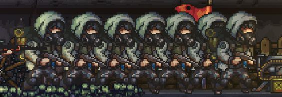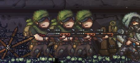 同时攻击最大量是四个,或者四个用起来比较顺手,最好带老手,只有铲子兵可以升级军衔,越老兵等级越高挖红薯速度越快)后期可以加一个猎人,主要负责帮你扔燃烧瓶快速清理