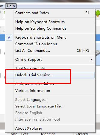 3、回到软件中,点击右上角help-选择unlock-trial。