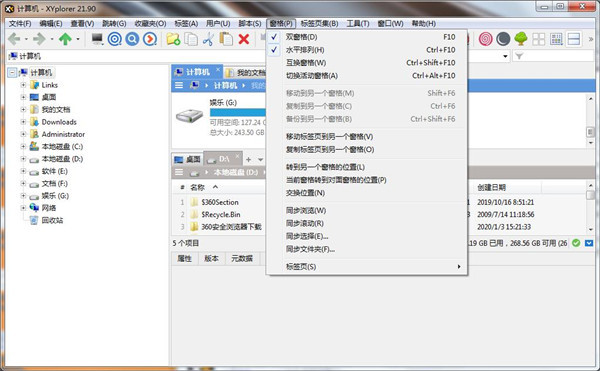 XYplorer在主界面左下角集成了目录功能,可以方便的为您自动处理一些任务并提供一系列示例为您展示其强大的可编程性,例如生成当前目录文件列表,将文件从上方面板复制至下方面板中以及调用编码器自动转化音视频文件等。
