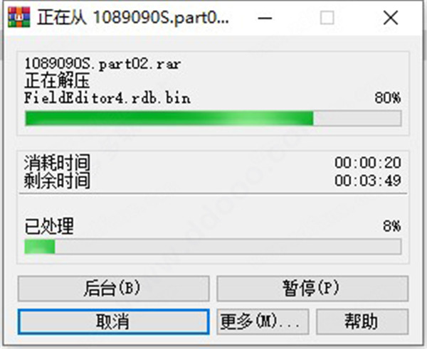 2、然后随便选中一个文件进行解压,正在解压中,请耐心等待