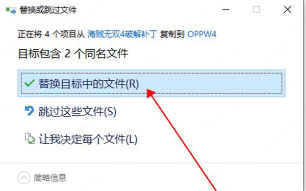 4、拥有同名的文件,选择第一个“替换目标中的文件”