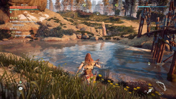 2、攀爬系统:地平线零之曙光破解版游戏内的攀爬点一般多由黄色、橙色、白色标记,在进行攀爬时一般只需要推动左摇杆对应方向,亚萝伊便可以自动攀爬,一些相离较远的攀爬点时再按X来跳跃