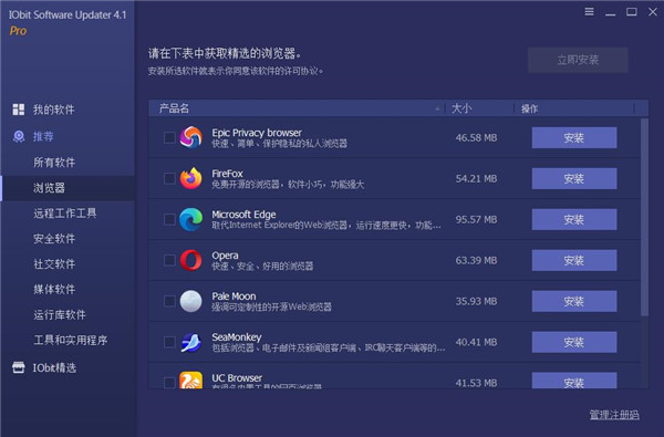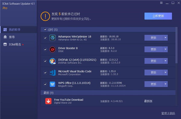 IObit软件更新程序提供了更新软件和安装基本程序的最简单方法,确保您享受所有新功能并保护您免受未修补的漏洞。