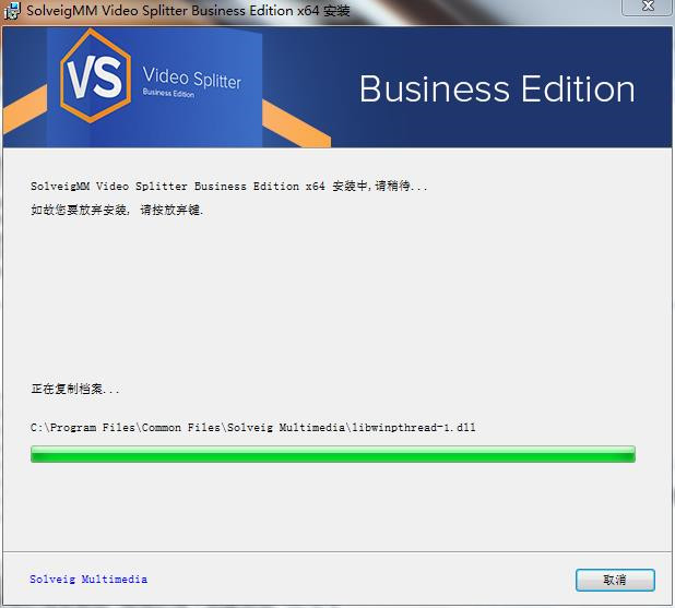 6、正在安装SolveigMM Video Splitter软件,等待软件安装完成。