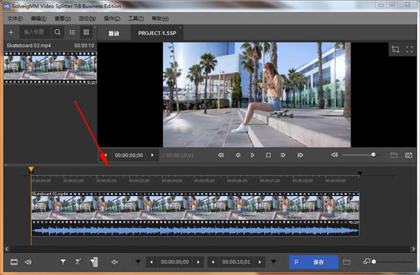 3、将视频文件拖动到下面的编辑区,就可以开始剪辑操作了。