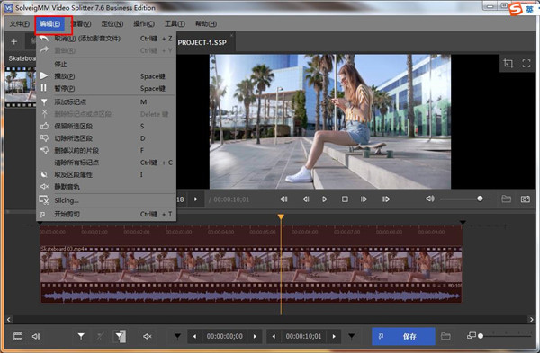 5、点击上方的编辑功能选项,可以对视频进行各种编辑操作。