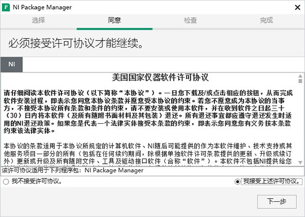 1、下载软件包然后解压安装包,得到镜像文件“ni-daqmx_20.7.0_offline.iso”,鼠标双击进行加载或者使用解压软件解压,进入软件协议界面,选择(我接受许可协议的条款)。