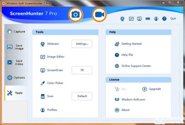 7、设置好ScreenHunter 7破解版软件之后我们就可以开始录制视频信息了,在上方有两个图标,左侧是截图,右侧是录制。