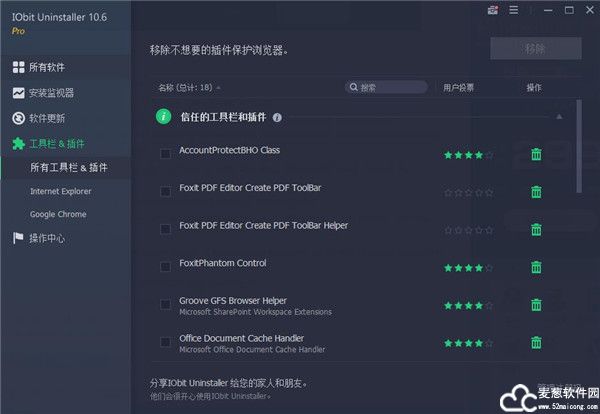 3、更快更安全浏览烦人的工具栏和插件降低了您的在线浏览体验,并侵犯了您的在线隐私。IObit Uninstaller 10破解版是用于检测和删除恶意和基于广告的插件的最佳卸载工具,以避免更改您的主页,跟踪您的活动或弹出广告。它还支持为 Windows 10 用户删除 Microsoft Edge 扩展。
