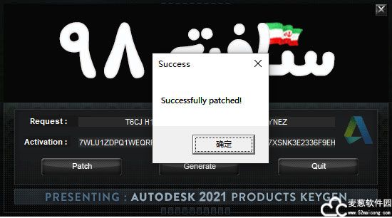 15、以管理员身份运行“xf-adesk20_v2.exe”文件,点击“patch”,弹出“successfully patched”,点击“确定”