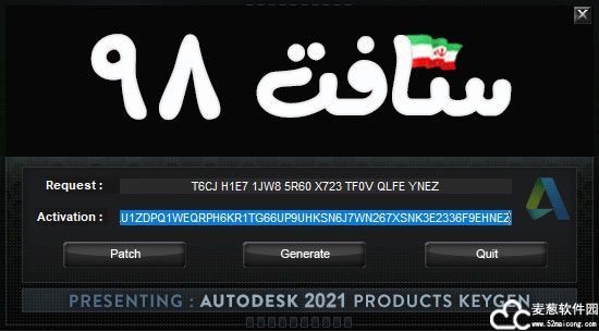 16、在Request方框中粘贴刚才复制好的申请号,点击Generate即可得到激活码,此时复制激活码