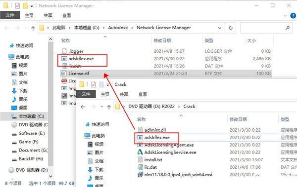 10、在将crack文件夹内的“adskflex.exe”文件复制到如下图目录中并进行替换