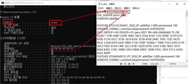 在以记事本的方式打开“lic.dat”文件并进行更改编辑HOSTNAME和MAC,然后再将文件另存为【C:AutodeskNetwork License Manager】