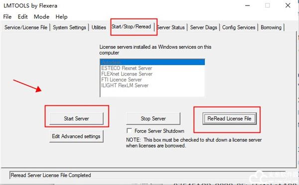 14、然后在“start/stop/read”点击“start server”,然后再点击“rereadlicense file”