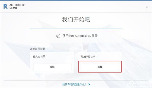 16、打开Autodesk Revit 2022软件,出现提示时,选择“使用网络许可证”