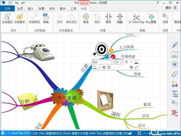 在思维导图中添加一个分支时,最重要的就是输入关键的想法。绘制思维导图的一个重要原则是每一个分支使用一个单词。因为与使用多个单词或短语相比,保持一个词产生的联想更大