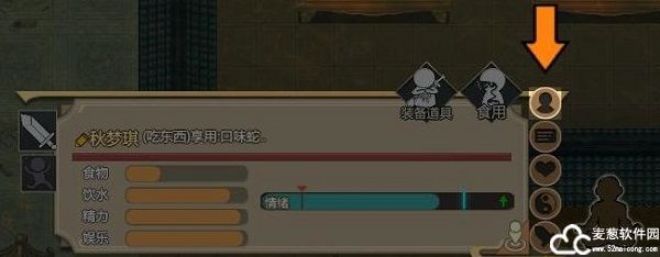此时会出现人物的属性、情绪等等各种信息,这里主要说一下情绪