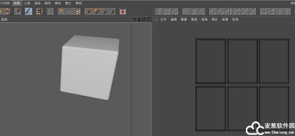 2、按C转化为多边形以后,查看它的UV,基本上六个面重合在一起了