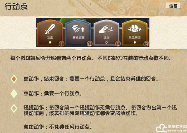战斗是以回合为单位的战棋模式。每个回合各个角色都会拥有两枚行动点,玩家可以自由选择每个行动点的使用顺序