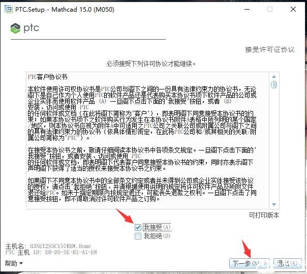 2、这里显示主机名与PTC主机ID,我们直接点击“下一步”即可