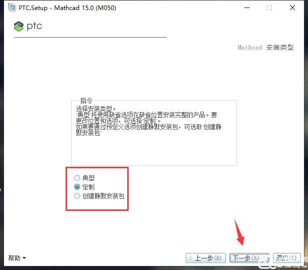 “典型”将使用缺省选项在缺省位置安装完整的产品。要更改位置和选项,可选择“定制”