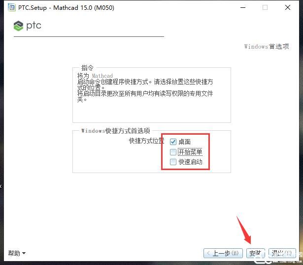 9、选择Windows快捷方式首选项,默认即可,点击“安装”