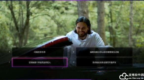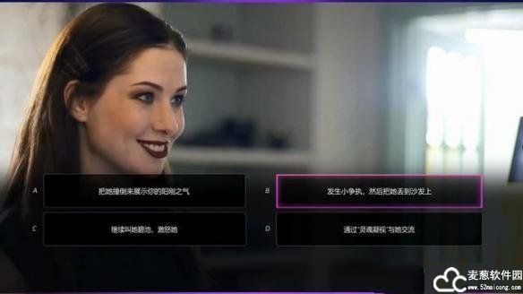2、接下来的对话中最佳选项是“证明她是个开发而友好的人”,把她套路住。