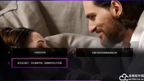11、在进入正戏的最后对话上最佳选项是“表示这太酷了,你们都很节制,她很随行而又不无聊”。