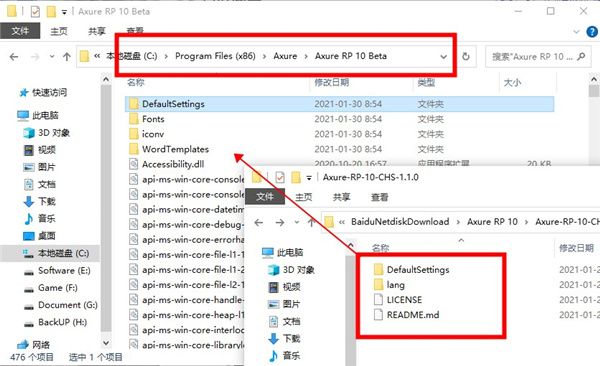 5、先将Axure-RP-10-CHS-1.1.0 汉化补丁复制到软件安装目录下